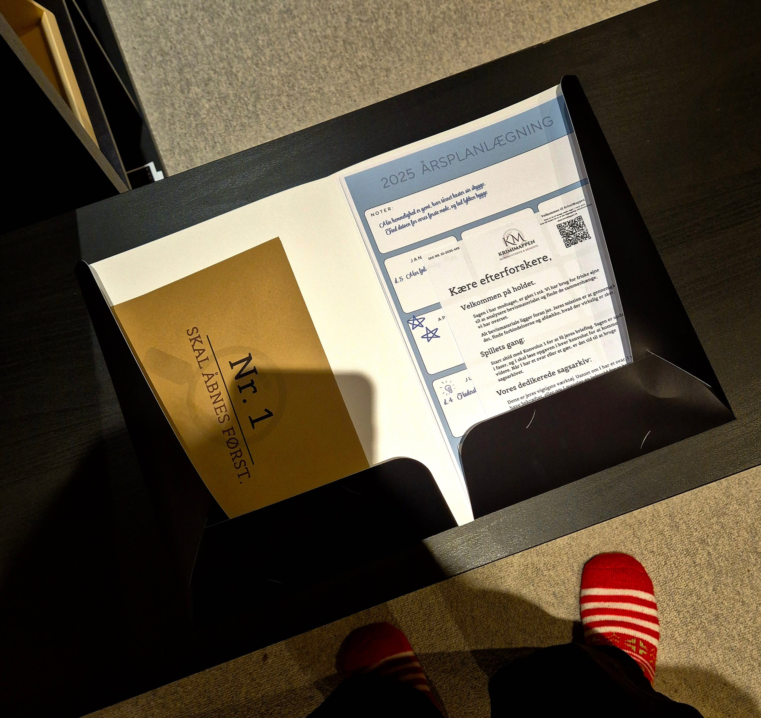 Resultatet er Krimimappen: 100% originale, danskproducerede mysterier, hvor du undgår dårlige oversættelser og i stedet får en autentisk oplevelse helt ned i papirkvaliteten.