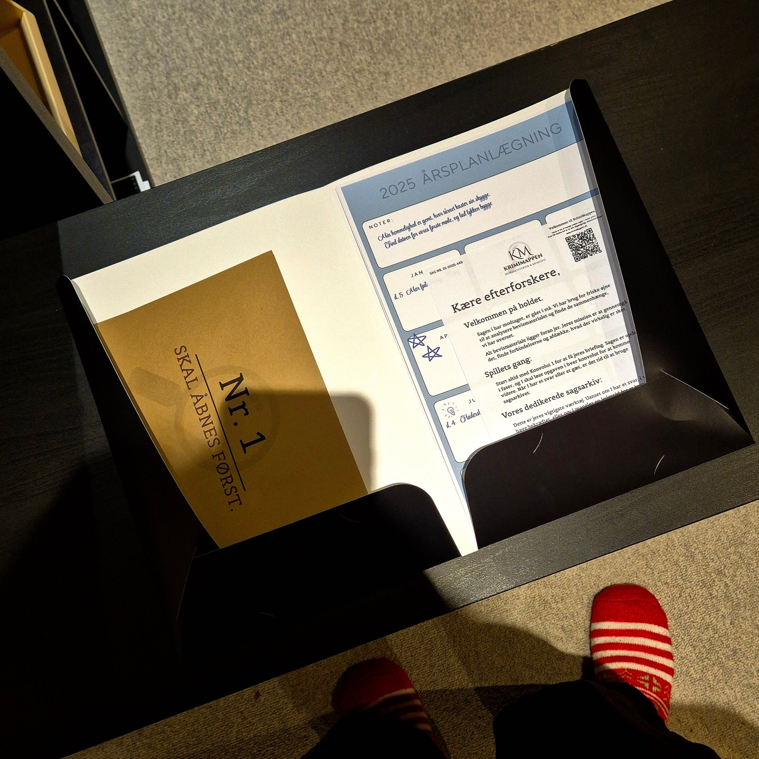 Krimimappen er vores hjertebarn. Vi har skabt præcis den oplevelse, vi selv manglede, så I kan lægge telefonerne væk og samles om nærvær, spænding og hjernegymnastik i trygge rammer.